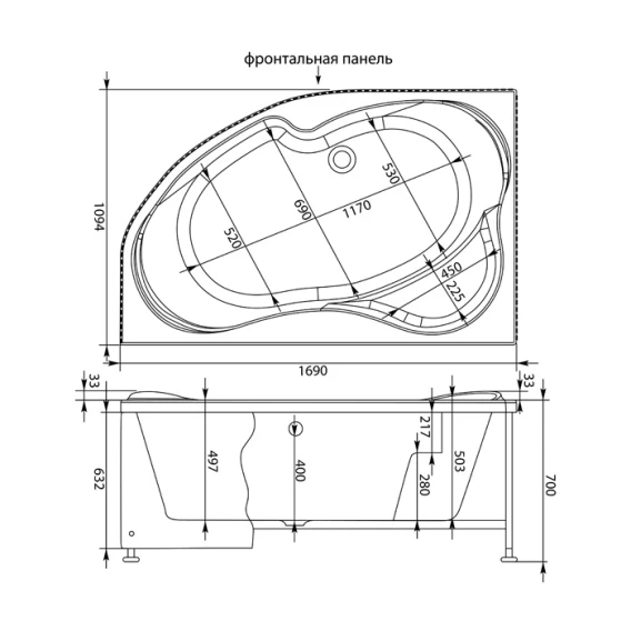 Акриловая ванна 169x109,4 см левая Aquanet Capri 00205345