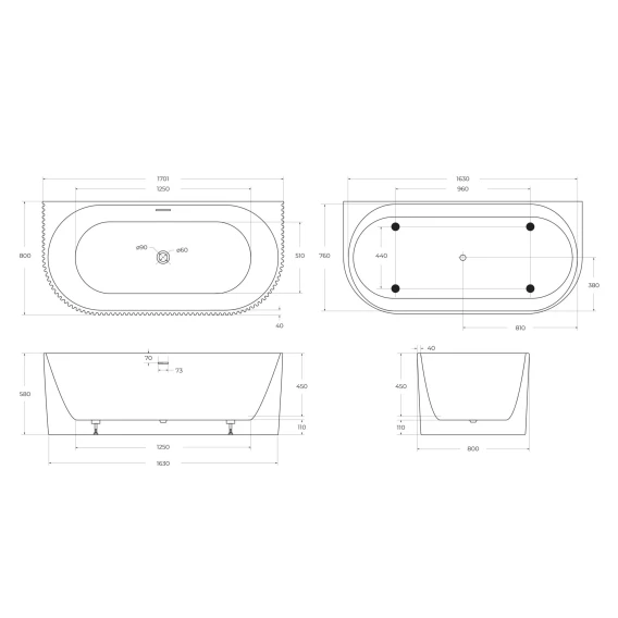Акриловая ванна 170,1x80 см BelBagno BB713-1700-800-MATT