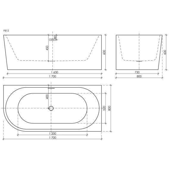 Акриловая ванна 170x80 см R Sancos Veneto FB12