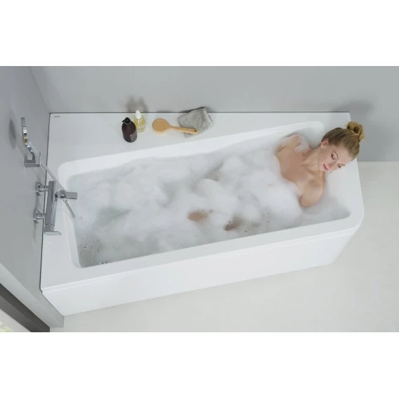 Допустимые отклонения по длине и ширине ванны составляют ± 5 мм. Ванну можно дополнить шторкой для 10CVS2, которая предназначена только для ассиметричной ванны 10°. В качестве дополнительных аксессуаров рекомендуем: переднюю панель и сточный комплект для ванны.
