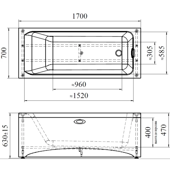 Акриловая ванна 170x70 см Radomir Агата 2-01-0-0-1-226H