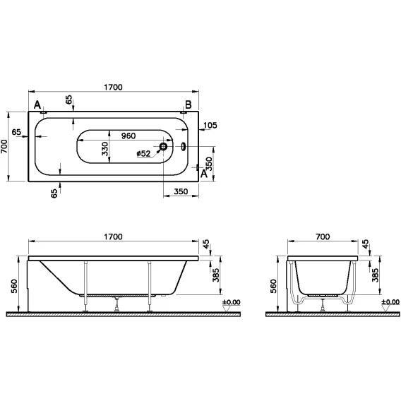 Акриловая ванна 170x70 см VitrA Optimum Neo 64530001000