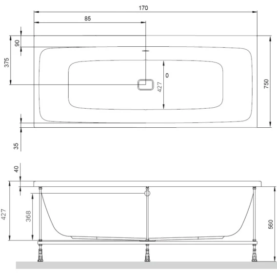 Акриловая ванна 170x75 см Am.Pm Func W84A-170-075W-A