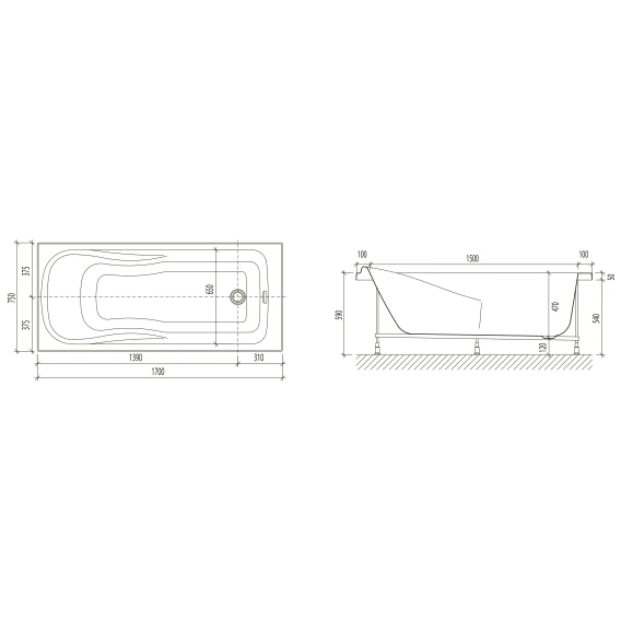 Акриловая ванна 170x75 см Eurolux Alla E1017075006