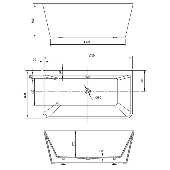 Акриловая ванна 170x80 см Vincea VBT-425-1700