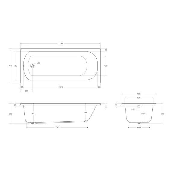 Акриловая ванна 175x75 см Cezares Eco ECO-175-75-41-W37