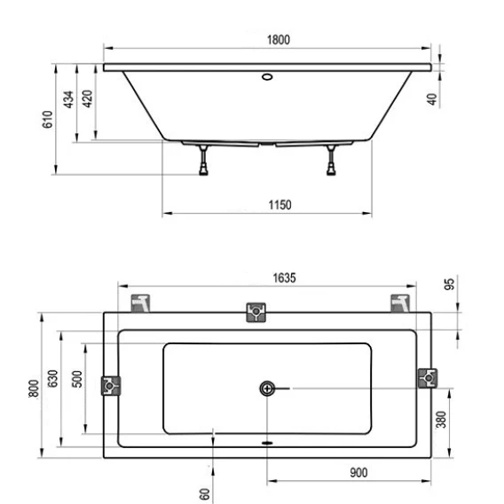Допустимые отклонения по длине и ширине ванны составляют ± 5 мм