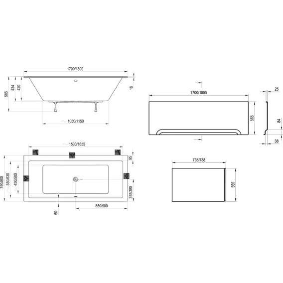 Для ванны размером 180 х 80 см можно приобрести переднюю и боковую панели из МДФ-панелей белого цвета. Система крепления передней панели является частью панели, нет необходимости покупать его отдельно!