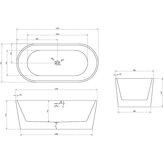 Акриловая ванна Abber AB9209 170x80 см, отдельностоящая, белый