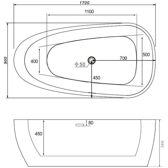 Акриловая ванна Abber AB9210 170x90 см, отдельностоящая, белый