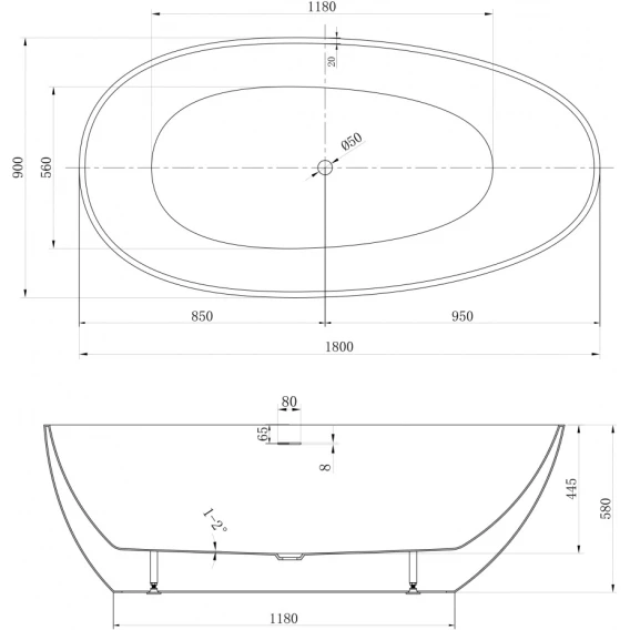 Акриловая ванна Abber AB9211-1.8 180x90 см, отдельностоящая, белый