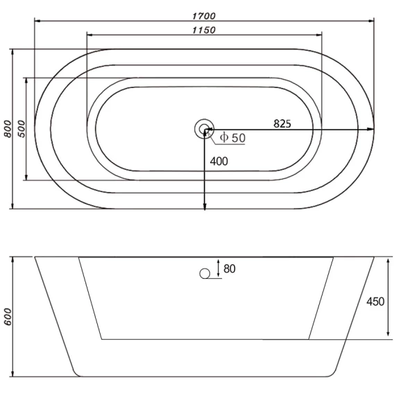 Акриловая ванна Abber AB9213 170x80 см, отдельностоящая, белый