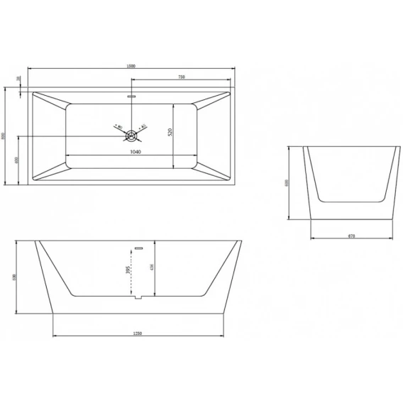 Ванна из литьевого мрамора Salini S-Stone Orlanda Axis Kit 103323M 170x75 см, белый матовый