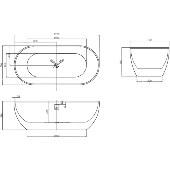 Акриловая ванна Abber AB9241MB 172x79 см, отдельностоящая, черный матовый/белый