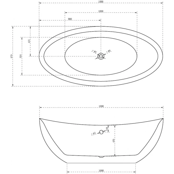 Акриловая ванна Abber AB9248 180x87 см, отдельностоящая, белый