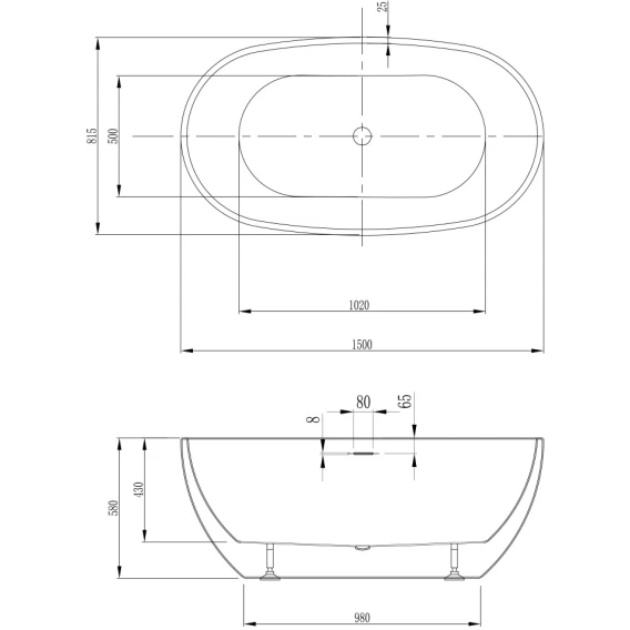 Акриловая ванна Abber AB9263-1.5 150x81,5 см, отдельностоящая, белый