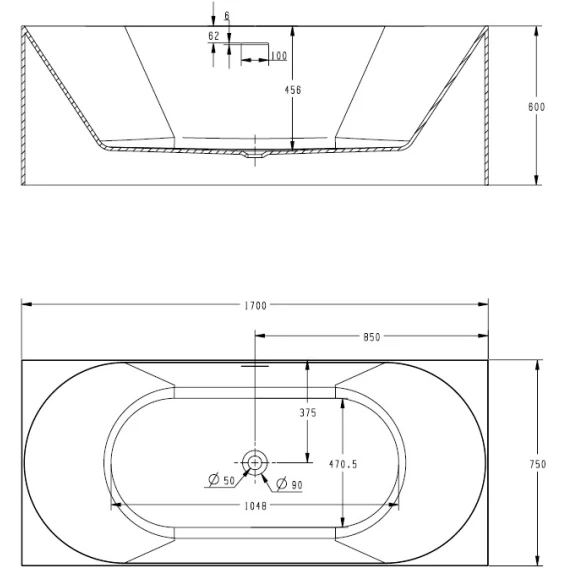 Акриловая ванна Abber AB9281 170x75 см, отдельностоящая, белый