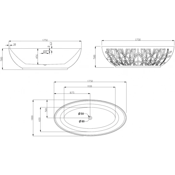 Акриловая ванна Abber AB9283 175x100 см, отдельностоящая, белый