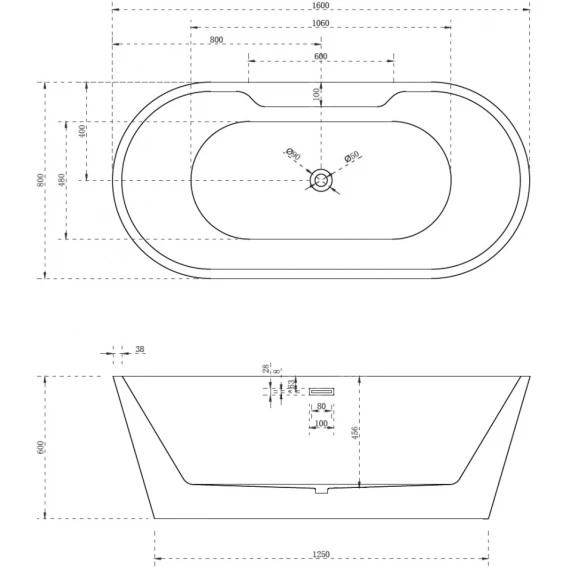 Акриловая ванна Abber AB9299-1.6 160x80 см, отдельностоящая, белый