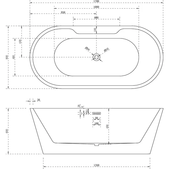 Акриловая ванна Abber AB9299-1.7 170x80 см, отдельностоящая, белый