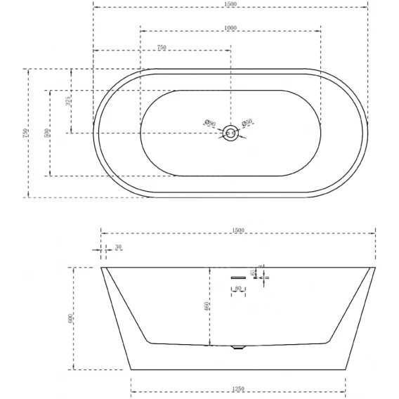 Акриловая ванна Abber AB9320-1.5 150x75 см, отдельностоящая, белый