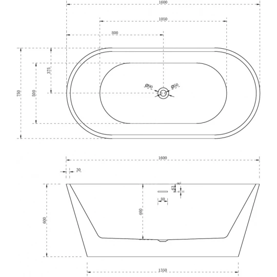 Акриловая ванна Abber AB9320-1.6 160x75 см, отдельностоящая, белый