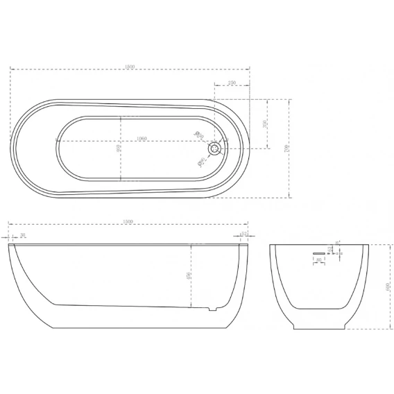 Акриловая ванна Abber AB9341-1.5 150x70 см, отдельностоящая, белый