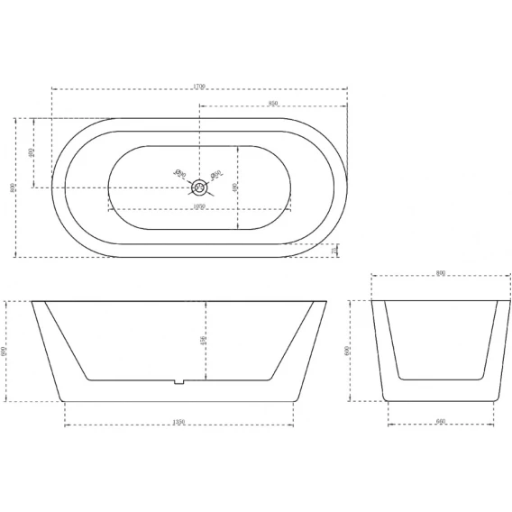 Акриловая ванна Abber AB9345-1.7 170x80 см, отдельностоящая, белый