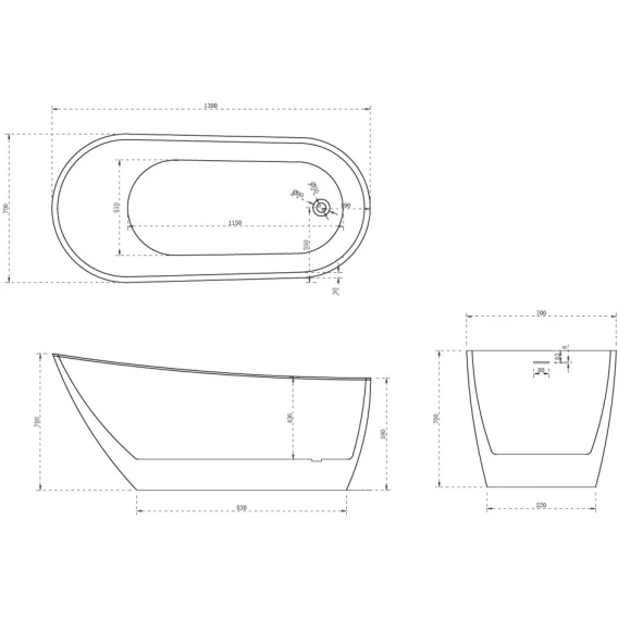 Акриловая ванна Abber AB9353-1.3 130x70 см, отдельностоящая, белый