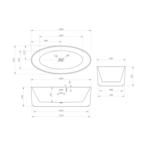 Акриловая ванна Abber AB9441-1.8 180x80 см, отдельностоящая, белый