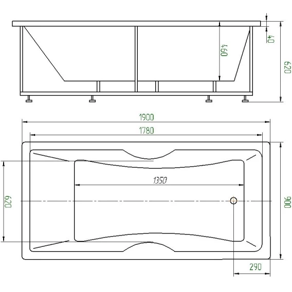 Металлический каркас, Панель под ванну, Слив-перелив, Ножки