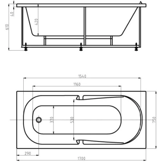 Металлический каркас, Панель под ванну, Слив-перелив, Ножки