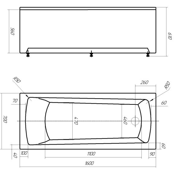 Металлический каркас, Панель под ванну, Слив-перелив, Ножки