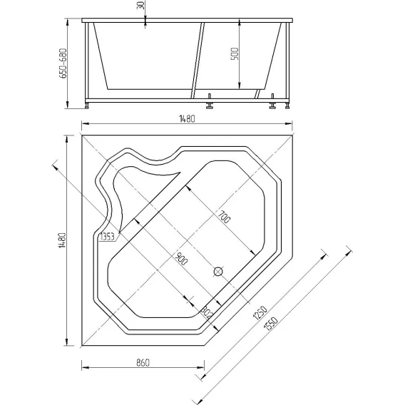 Форма ванны очень подошла для нас, встала вровень с стиральной машиной, установил без всяких трудностей.