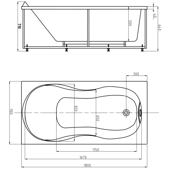 Металлический каркас, Панель под ванну, Слив-перелив, Ножки
