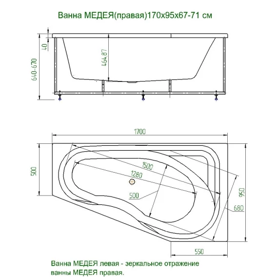 Акриловая ванна Aquatek Медея MED180-0000195 170x95 см R, угловая, белый
