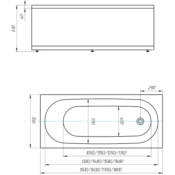 Металлический каркас, Панель под ванну, Слив-перелив, Ножки