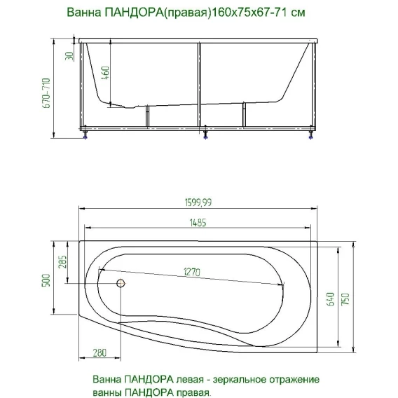 Акриловая ванна Aquatek Пандора PAN160-0000054 160x75 см R, угловая, белый