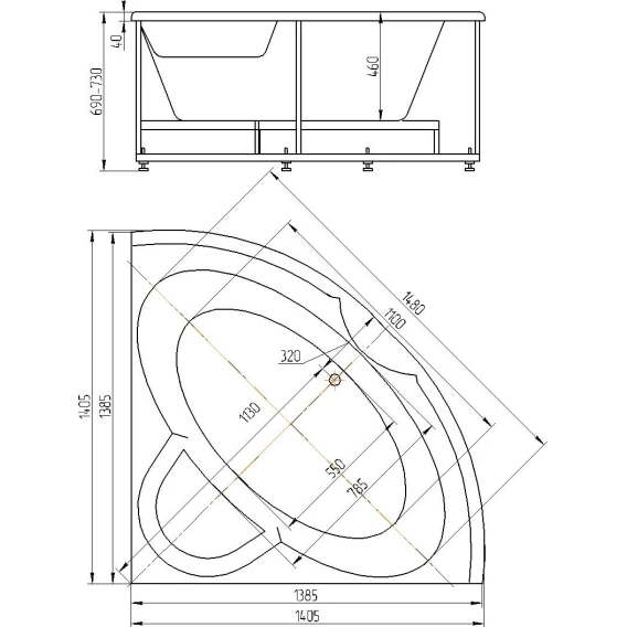 Акриловая ванна Aquatek Поларис POL1-0000030 140,5x140,5 см, угловая, белый