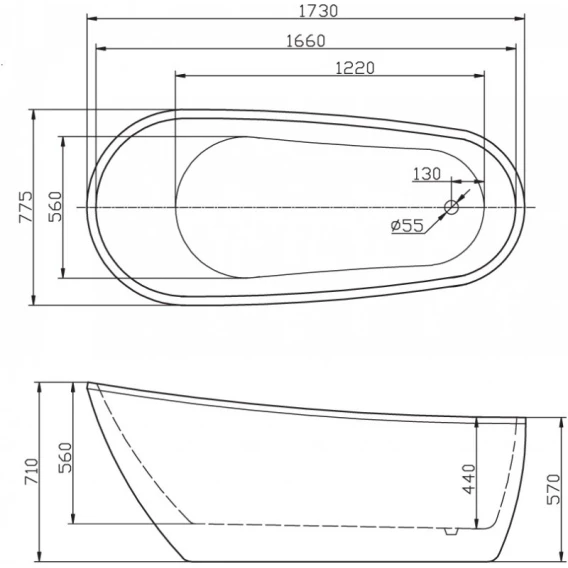 Акриловая ванна BelBagno BB15 173x77,5 см, отдельностоящая, белый