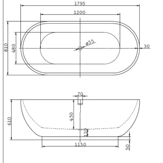 Акриловая ванна BelBagno BB26 179,5x81 см, отдельностоящая, белый