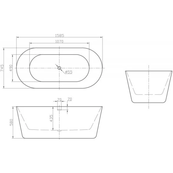 Акриловая ванна BelBagno BB306-1585 158,5x74,5 см, отдельностоящая, белый
