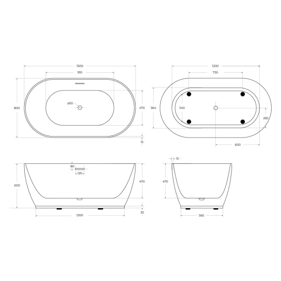 Акриловая ванна BelBagno BB413-1500-800 150x80 см, отдельностоящая, белый