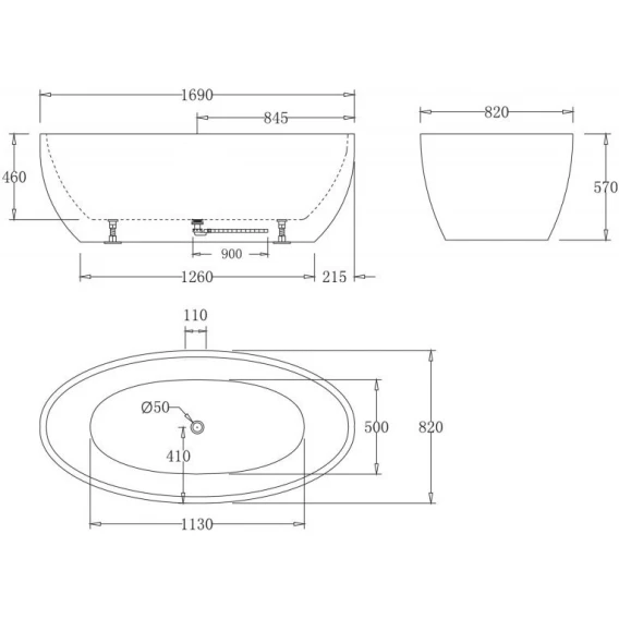 Акриловая ванна BelBagno BB69-1700-W0 169x82 см, отдельностоящая, белый