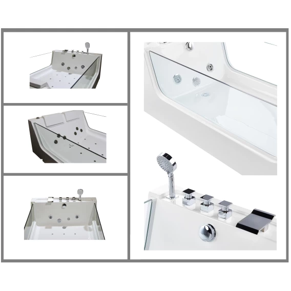 - Гидромассажные форсунки : 6 штук в зоне спины + 2 в зоне ног.
