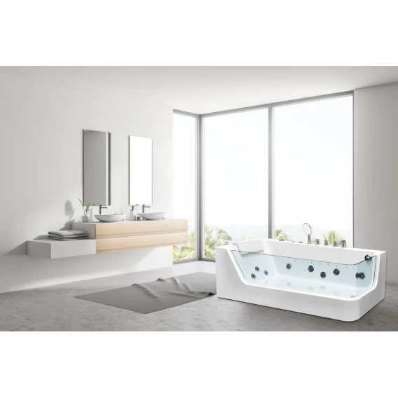 Современная акриловая гидромассажная ванна Ceruttispa C-494-17L – выполнена из 100% акрила и закаленного стекла. Ударопрочное стекло толщиной 10 мм без металлической окантовки безопасно и придает ванне современный дизайн. Дно с антискользящим покрытием предупреждает падения
