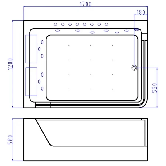 - Датчик сухого пуска защищает гидромассажную систему от поломки в случае включения ванны без воды