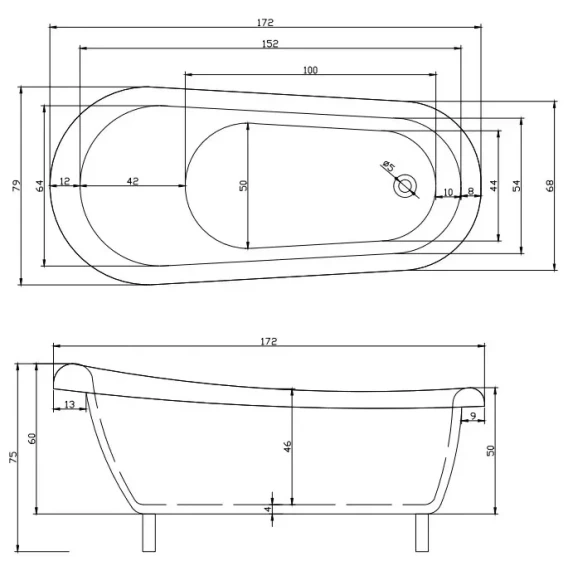 Акриловая ванна Ceruttispa Classic CT9668 172x79 см, отдельностоящая, белый