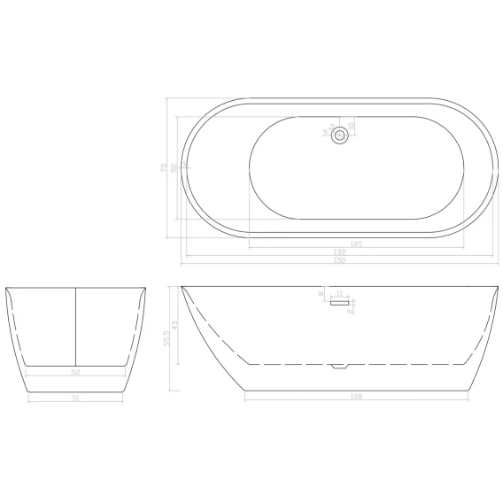 Акриловая ванна Ceruttispa Como CT9900 150x75 см, отдельностоящая, белый