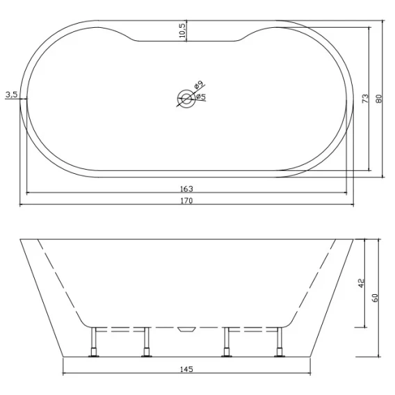 Акриловая ванна Ceruttispa Martigiano CT7766 170x80 см, отдельностоящая, белый